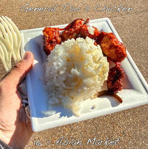 This is festival food with serious flavor. The chicken stays crispy even under the sweet-spicy sauce, delivering the perfect balance of heat and sweetness. Served over fluffy white rice, it’s filling, flavorful, and one of the standout global offerings at the festival.