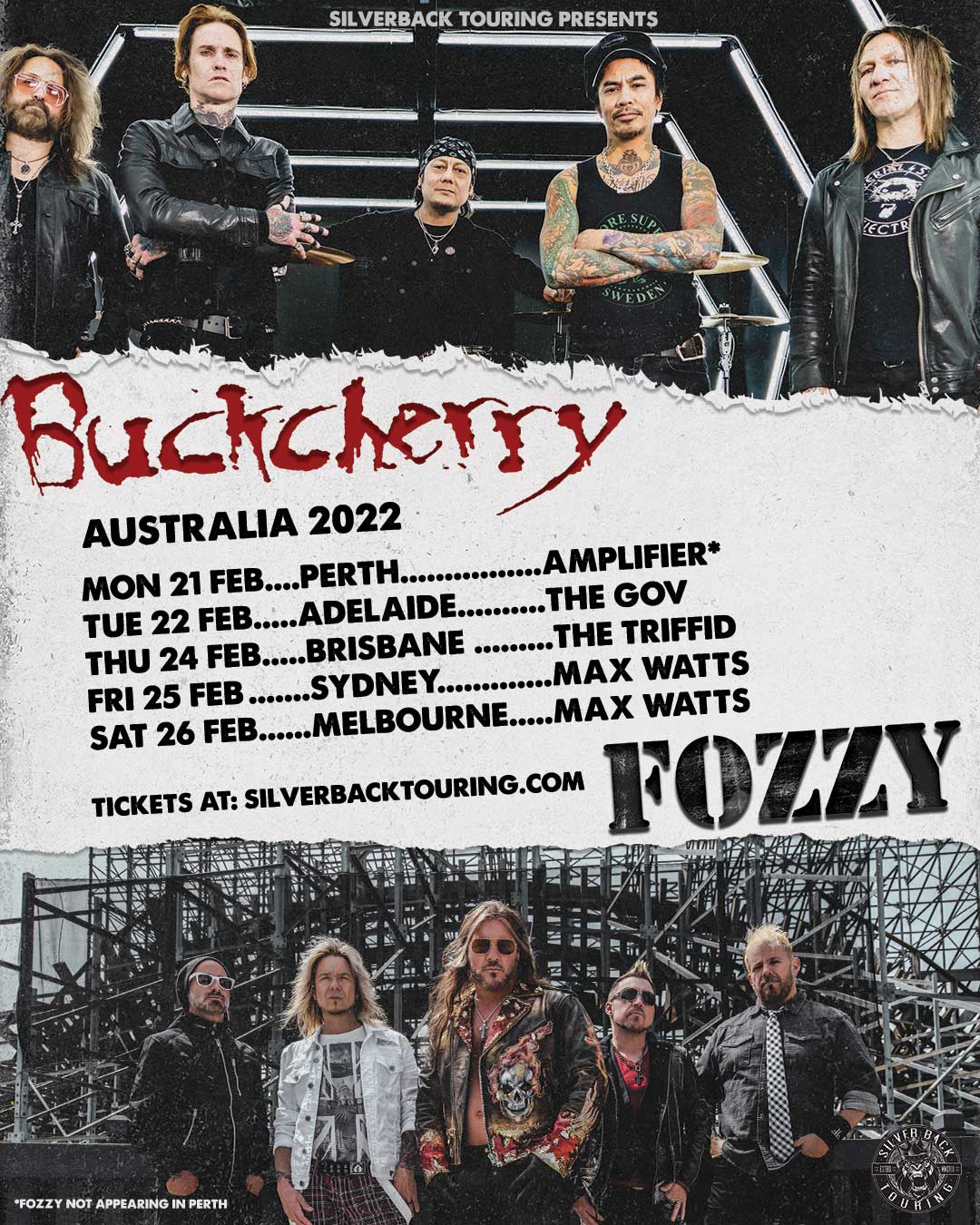 Also, today the band announce their February 2022 tour of Australia, co-headlining with Fozzy. The Perth show will feature Buckcherry alone. Dates for the Australian tour are below.