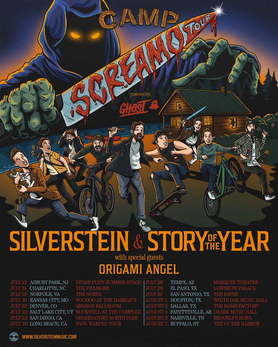 Silverstein and Story Of The Year have joined forces to bring fans the Camp Screamo Tour. Kicking off on July 12th, the month-long run will mark the first time the two rock juggernauts have hit the road together. Joining them are special guest Origami Angel. Tickets, including VIP packages, will be available starting Friday April 10th at 10am local time. For more information, please visit: http://silversteinmusic.com/vip.