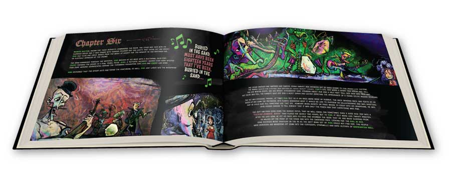 The acidic illustrated novella will hit stores on October 10, with a standard edition and a slipcased deluxe edition available. For fans looking for a more exclusive collectible, the Z2 store will have a Platinum edition available to purchase which includes Les Claypool’s signature bound into the book, a green-vinyl variant of Primus’s Frizzle FryLP, three art prints, and three card set trading cards. This edition is limited to 500 units only, on a first-come-first-serve basis at Z2comics.com.