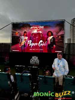 Paper Girls is a science fiction drama streaming television series created by Stephany Folsom. It is based on the 2015–19 comic book series of the same name written by Brian K. Vaughan and illustrated by Cliff Chiang. The series is out now exclusively on Amazon Prime Video. Check out our photos from the San Diego Comic-Con Rooftop Fan Screening Event below.